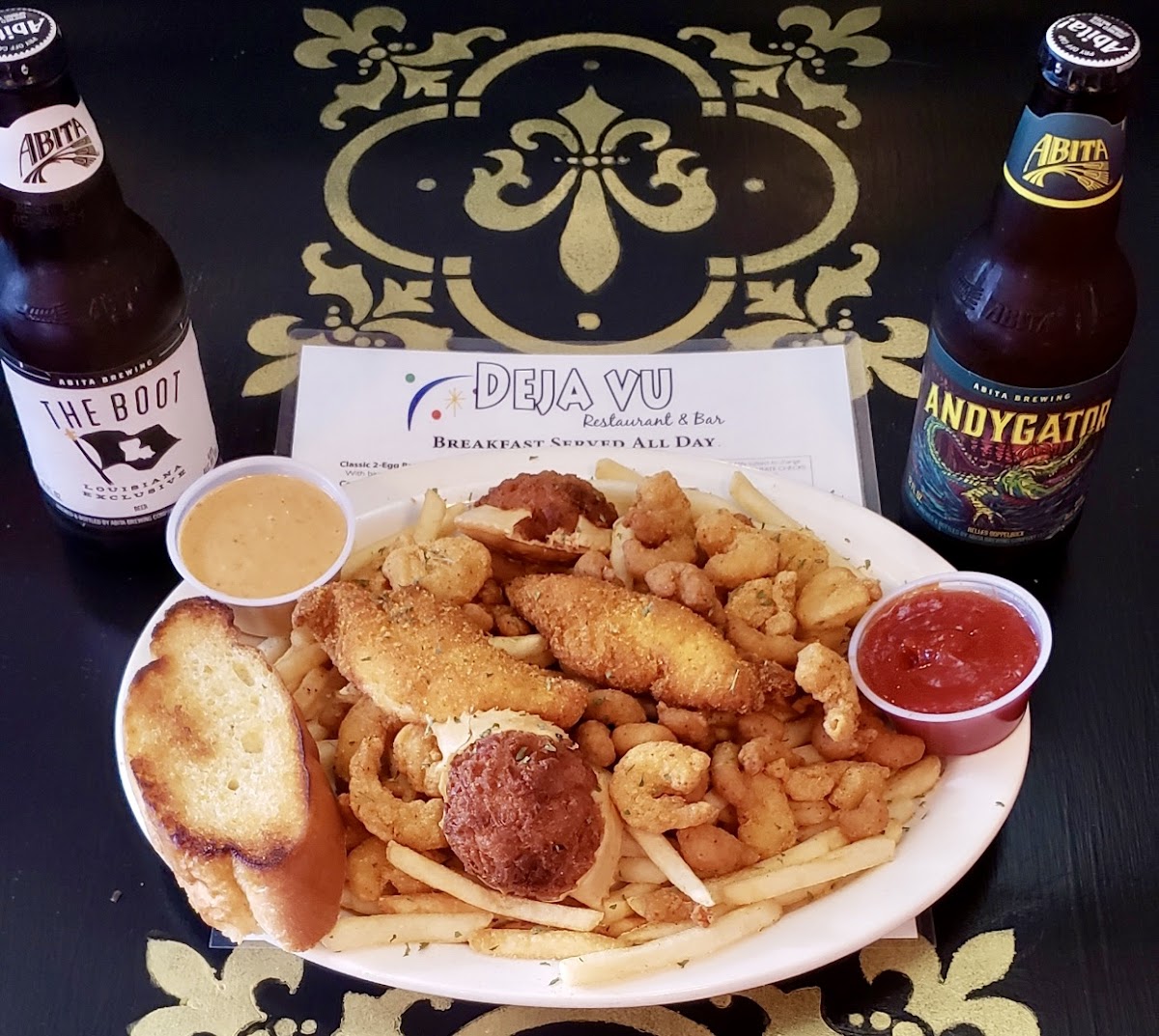 When it comes to the food, Déjà Vu gracefully balances New Orleans favorites with straightforward comfort. The menu is a warm invitation to savor classic staples—think of the rich, hearty jambalaya, the smoky goodness of a Creole trio, or the satisfying crunch of fried pickles that have become something of a local favorite. Mornings here carry the savory aroma of breakfast favorites, with dishes like steak and eggs or eggs Benedict serving as a gentle start to the day, paired with freshly brewed coffee to ease you in.
